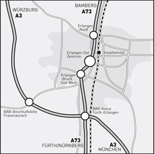 Mit dem Auto über die A 73 aus Richtung Nürnberg kommend